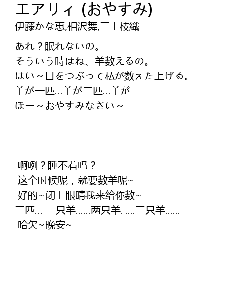 | [00:02.83] | そういう時はね、羊数えるの。 |