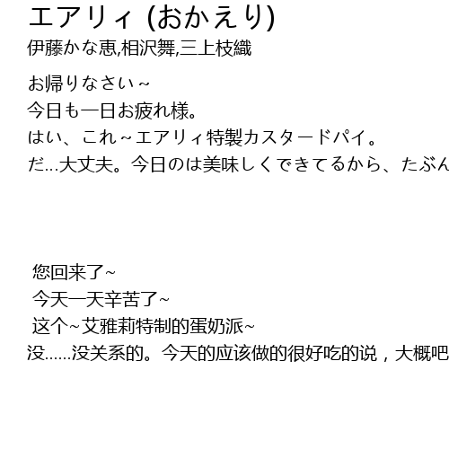 | [00:00.30] | お帰りなさい~ |