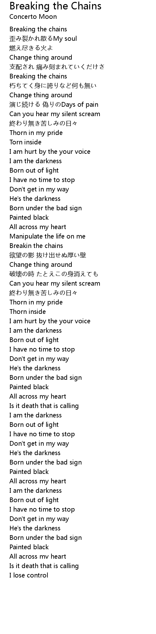 | 歌曲 | Breaking the Chains |
