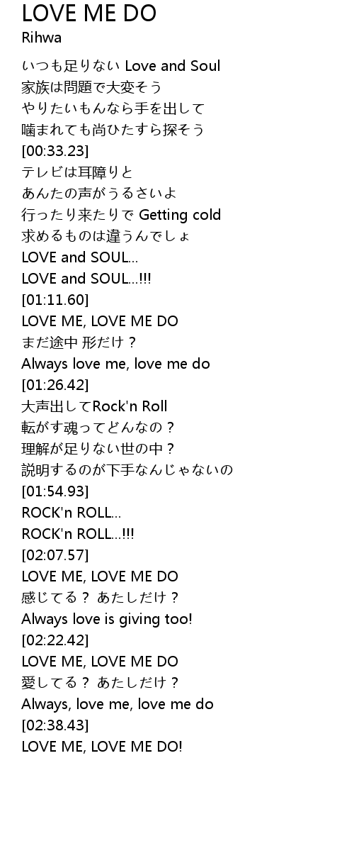 | [02:24.07] | LOVE ME, LOVE ME DO |