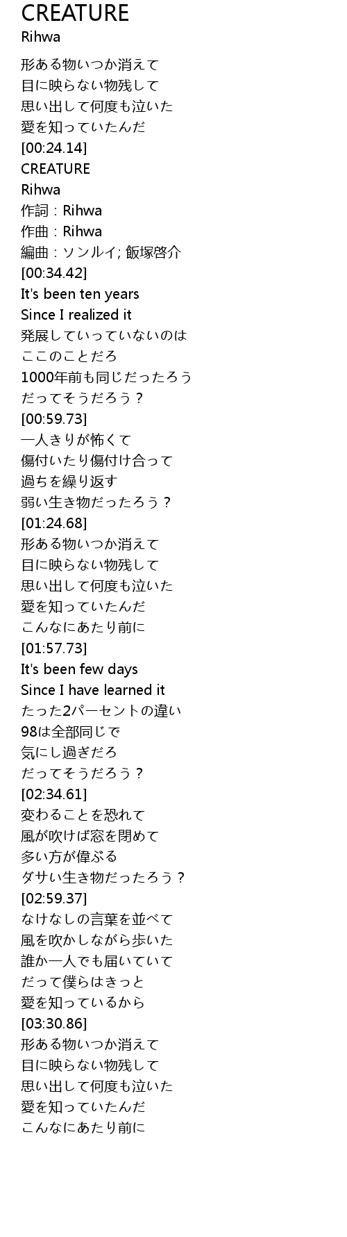 | [00:25.20] | CREATURE |