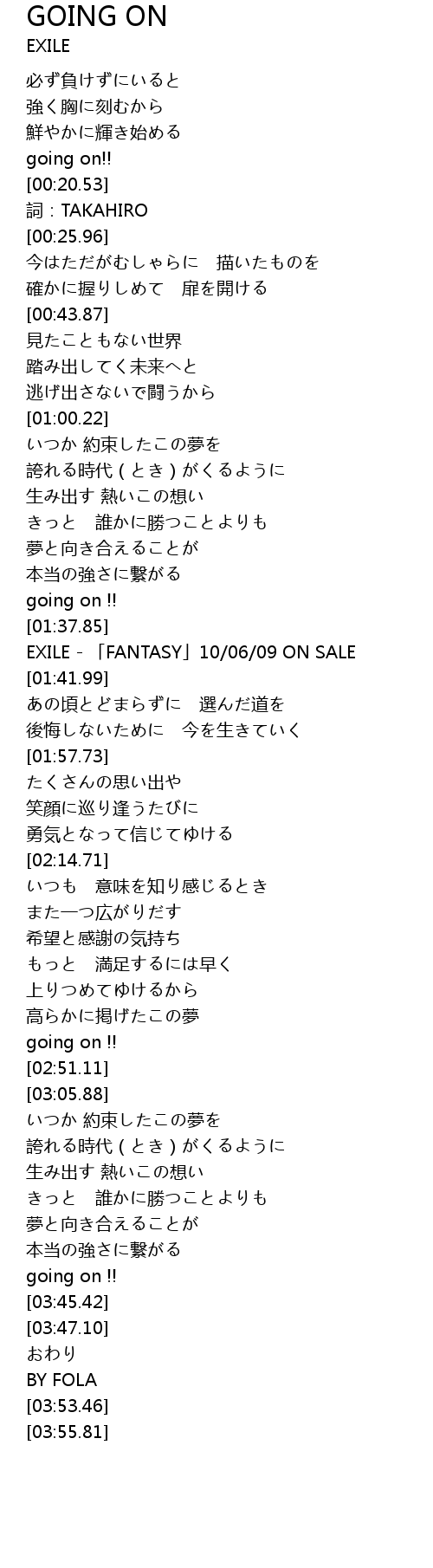 | [01:38.95] | EXILE - 「FANTASY」10/06/09 ON SALE |