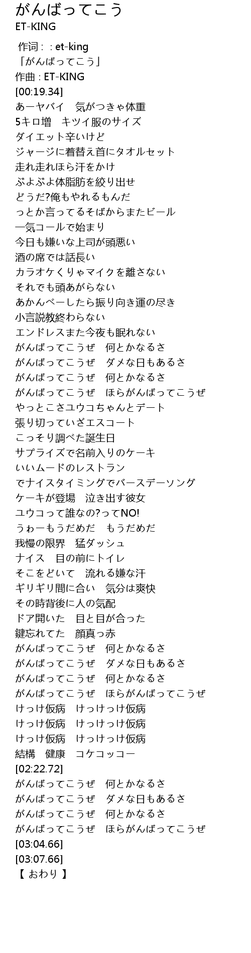 | [02:59.86] | がんばってこうぜ ほらがんばってこうぜ |