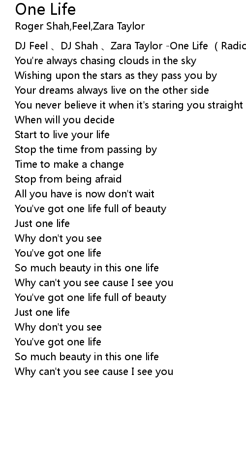 | [00:00.00] | DJ Feel DJ Shah Zara Taylor One Life Radio Edit |