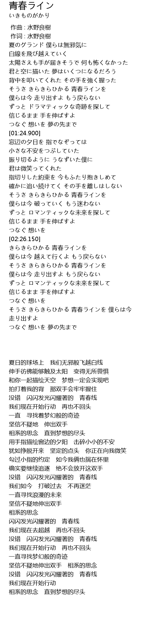 | [01:57.460] | 没错 闪闪发光闪耀著的 青春线 |