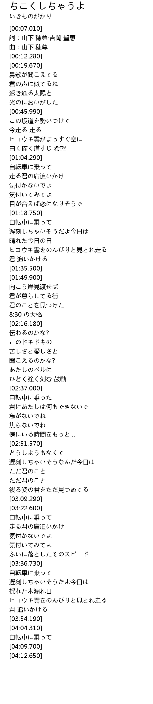 | [03:45.730] | ヒコウキ雲をのんびりと見とれ走る |