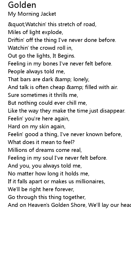 And on Heaven's Golden Shore, We'll lay our heads." |