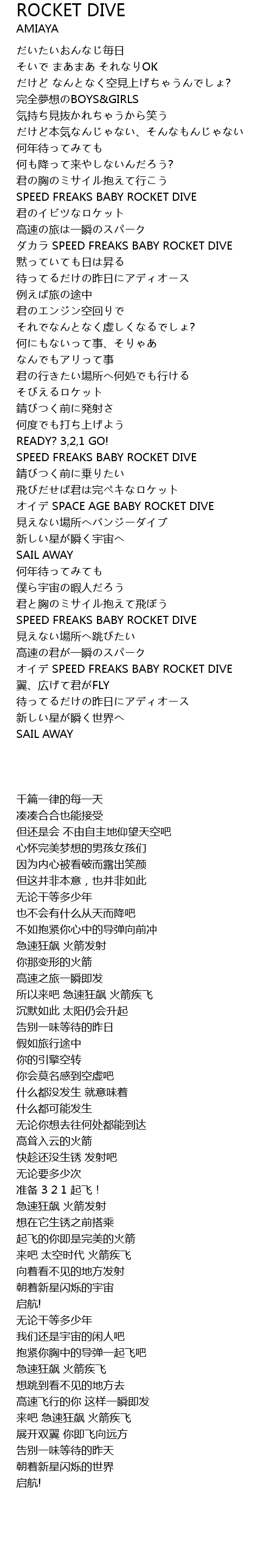 | [03:25.62] | SPEED FREAKS BABY ROCKET DIVE |