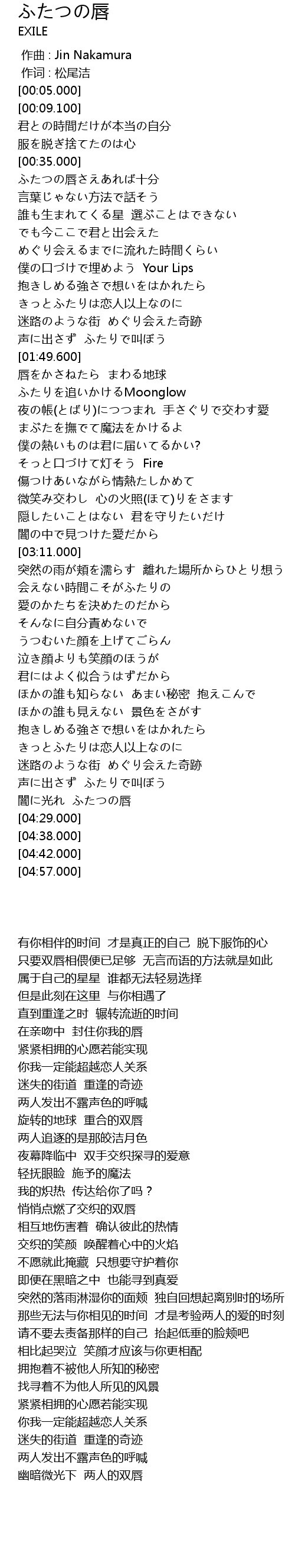 | [04:21.000] | 闇に光れ ふたつの唇 |
