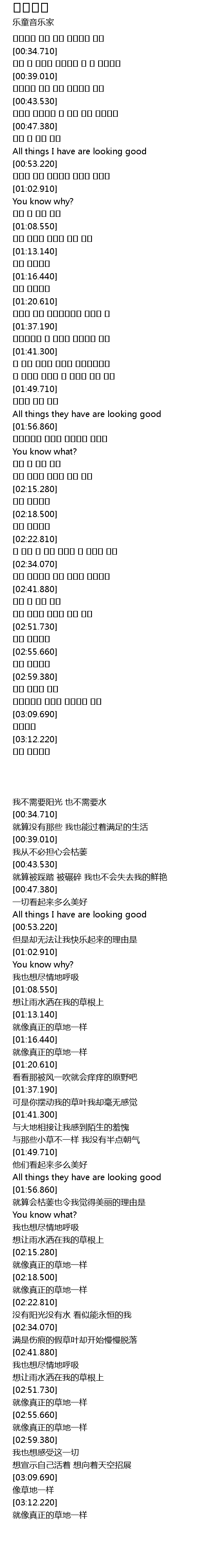 | [01:46.370] | 与那些小草不一样 我没有半点朝气 |