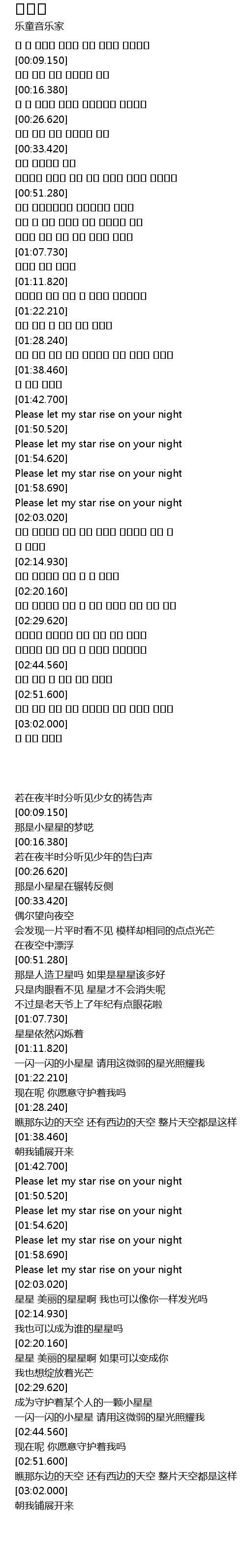 | [02:20.680] | 星星 美丽的星星啊 如果可以变成你 我也想绽放着光芒 |