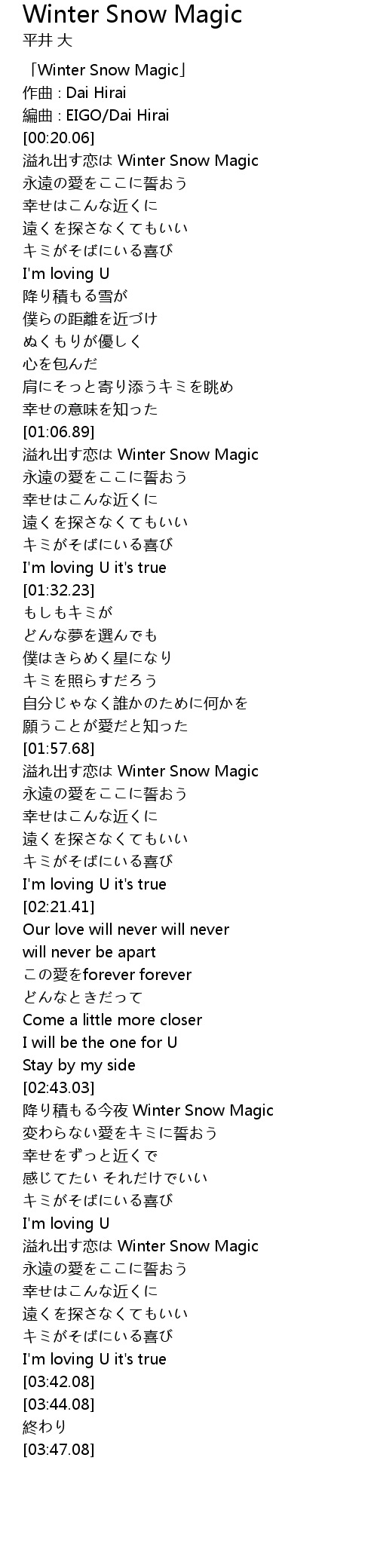 | [00:00.06] | 「Winter Snow Magic」 |