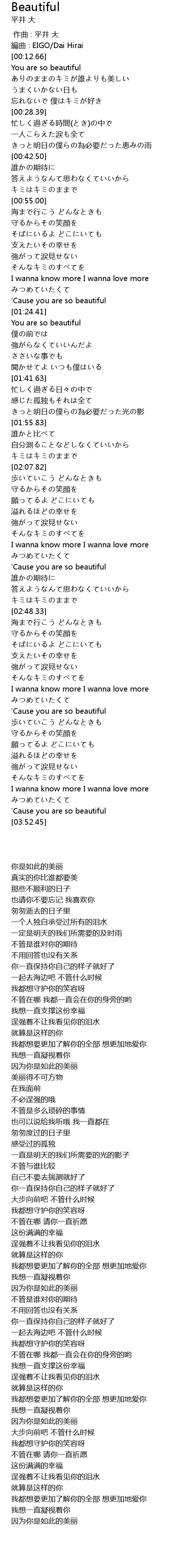 | [03:14.54] | 因为你是如此的美丽 |
