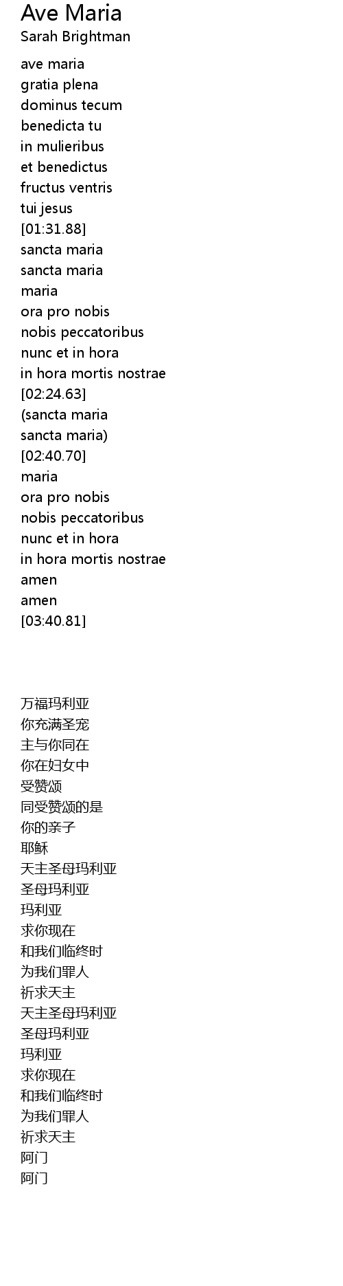 | [02:32.65] | 圣母玛利亚 |
