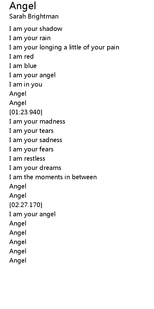 | [00:54.880] | I am your angel |