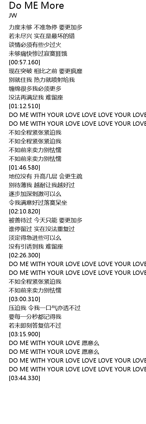 | [03:30.980] | DO ME WITH YOUR LOVE LOVE LOVE YOUR LOVE wei gou duo |