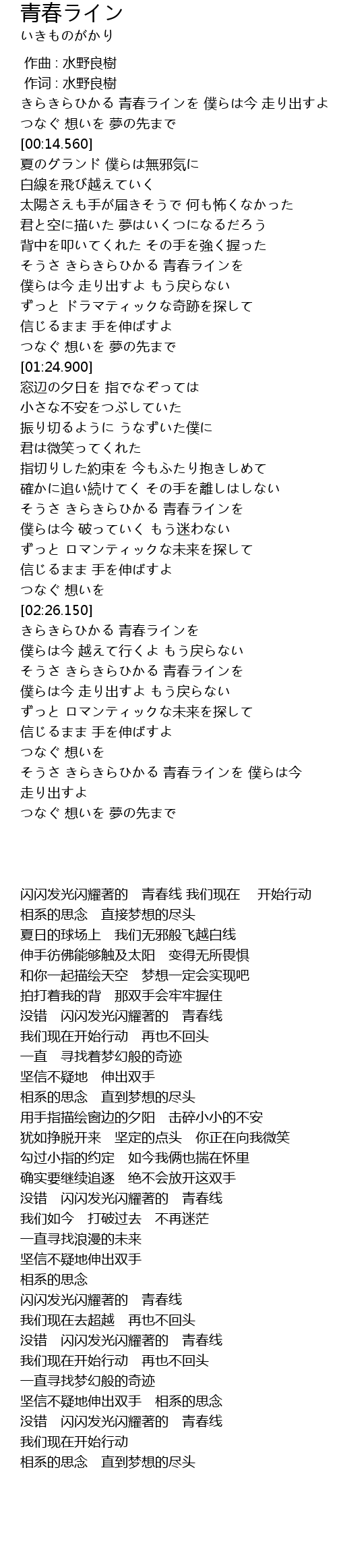 | [03:15.650] | 没错 闪闪发光闪耀著的 青春线 |