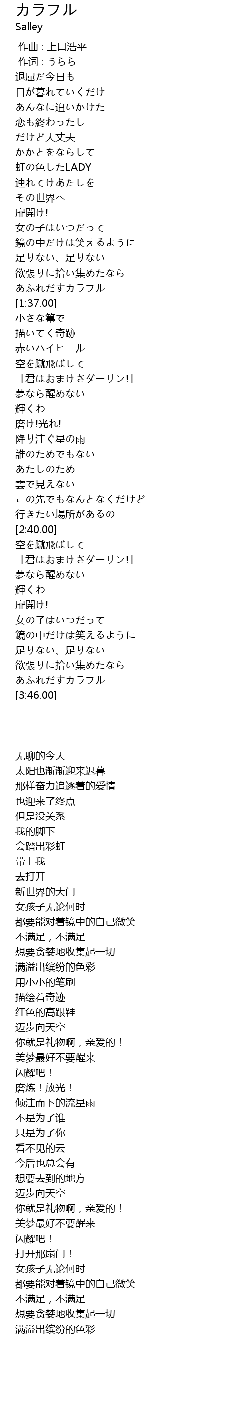 | [3:40.00] | 满溢出缤纷的色彩 |