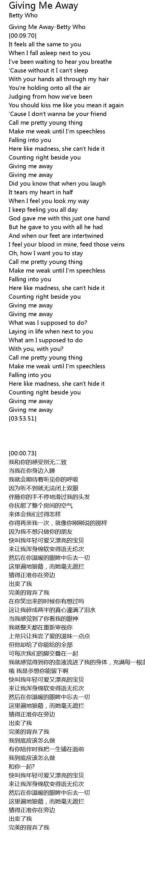 Giving Me Away-Betty Who |
