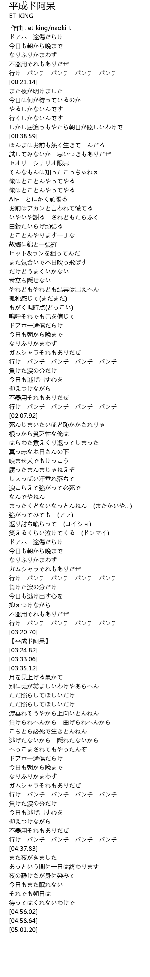 | [02:01.03] | 行け パンチ パンチ パンチ パンチ |