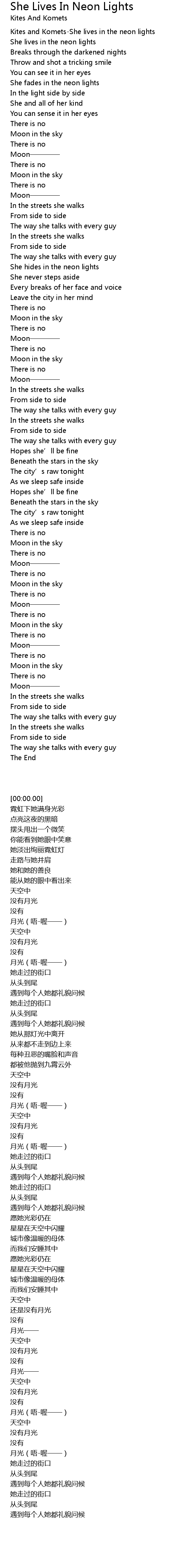| [00:00.00] | Kites and KometsShe lives in the neon lights |