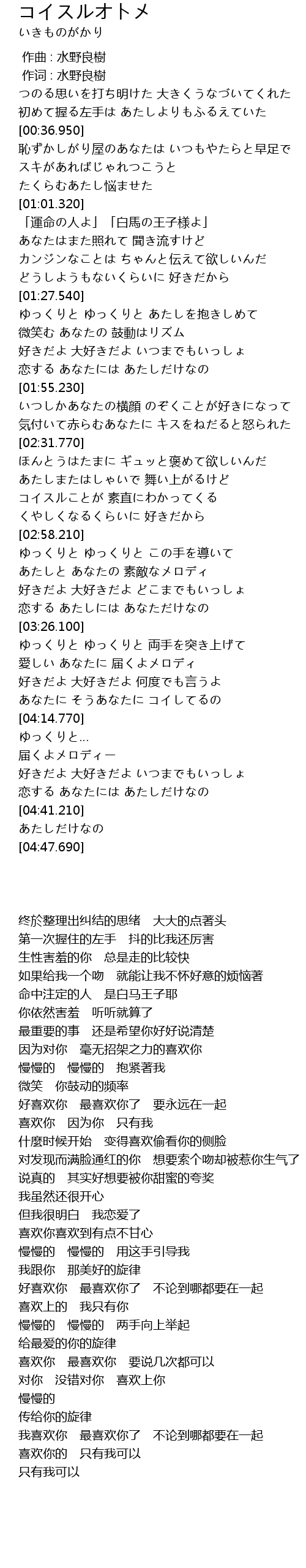 | [04:27.340] | 我喜欢你 最喜欢你了 不论到哪都要在一起 |