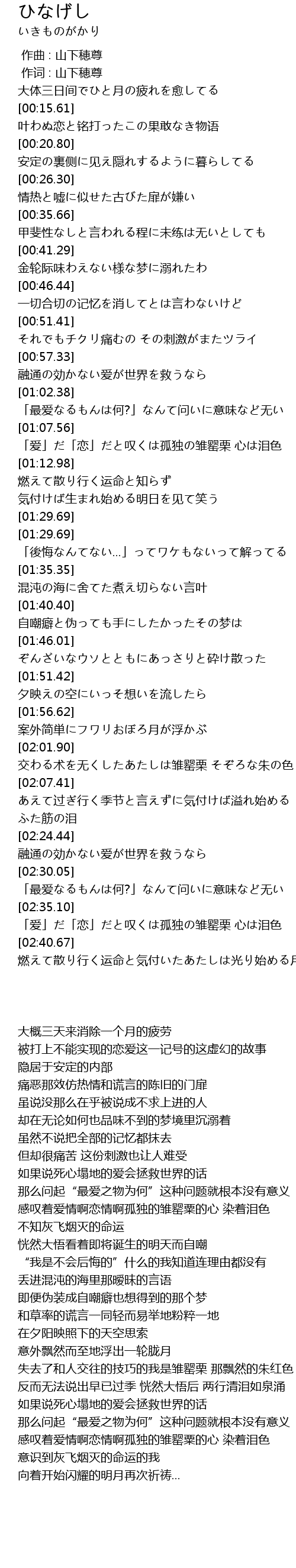| [00:01.00] | 作词 : 山下穂尊 |