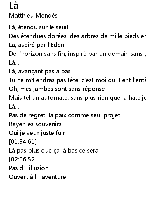 | [02:03.52] | Là pas plus que a là bas ce sera |