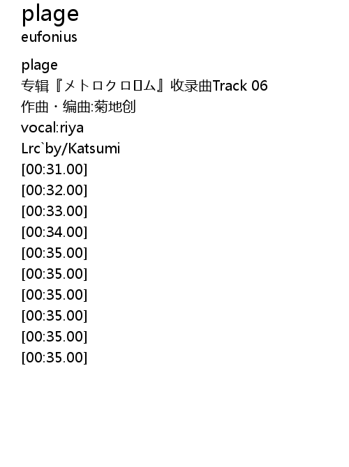 | [00:10.00] | 专辑『メトロクロ�ム』收录曲Track 06 |