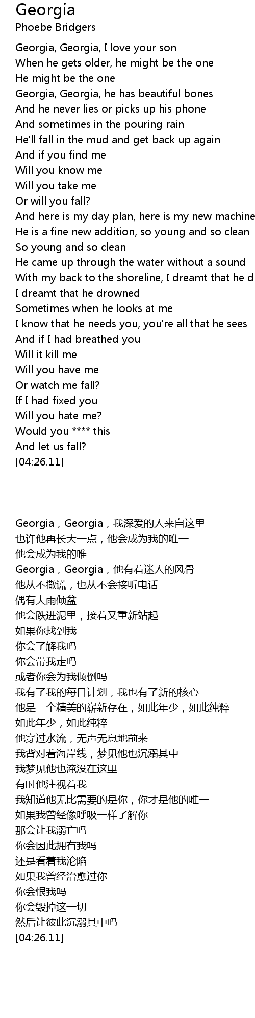 Georgia, Georgia, I love your son |