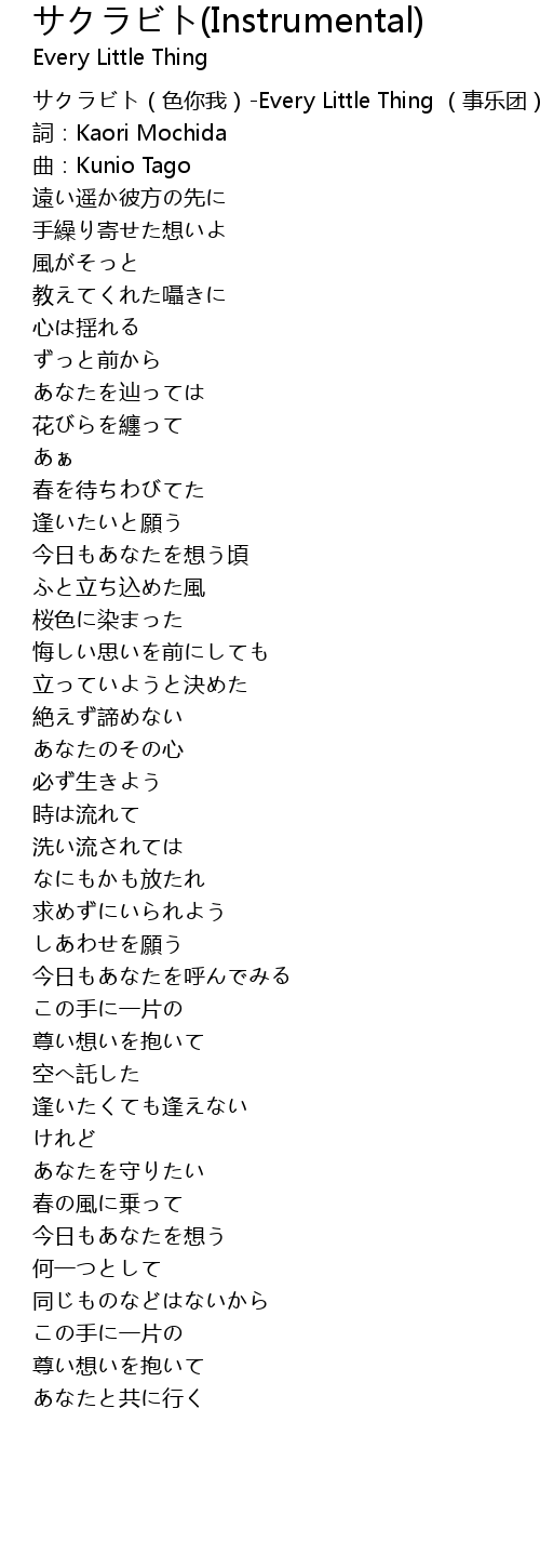 | [00:00.00] | サクラビト(色你我)-Every Little Thing (事乐团) |