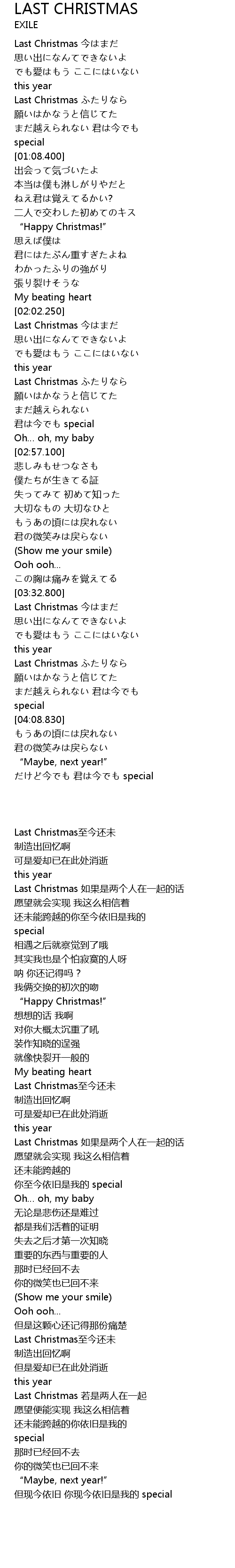 | [03:33.190] | Last Christmas至今还未 |
