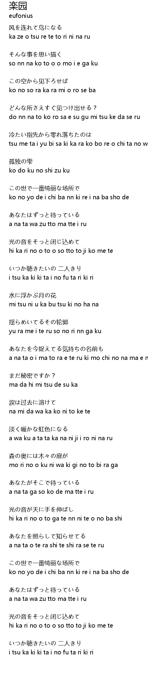 | hi ka ri no o to o so tto to ji ko me te | |