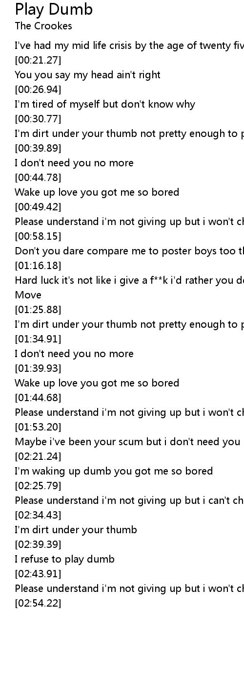 I'm dirt under your thumb not pretty enough to play dumb |
