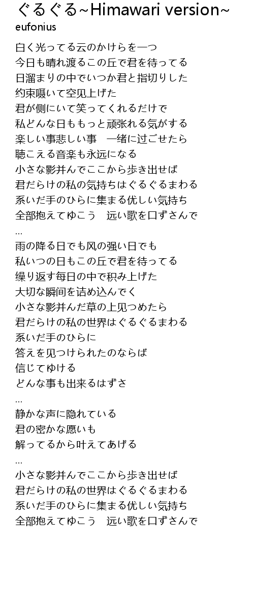 | [02:35.56] | 君だらけの私の世界はぐるぐるまわる |