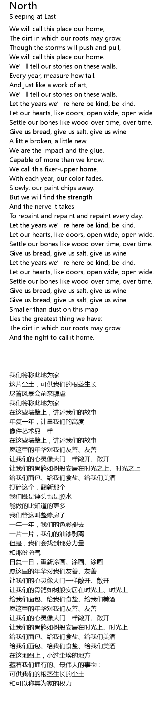 | 歌曲 | North |