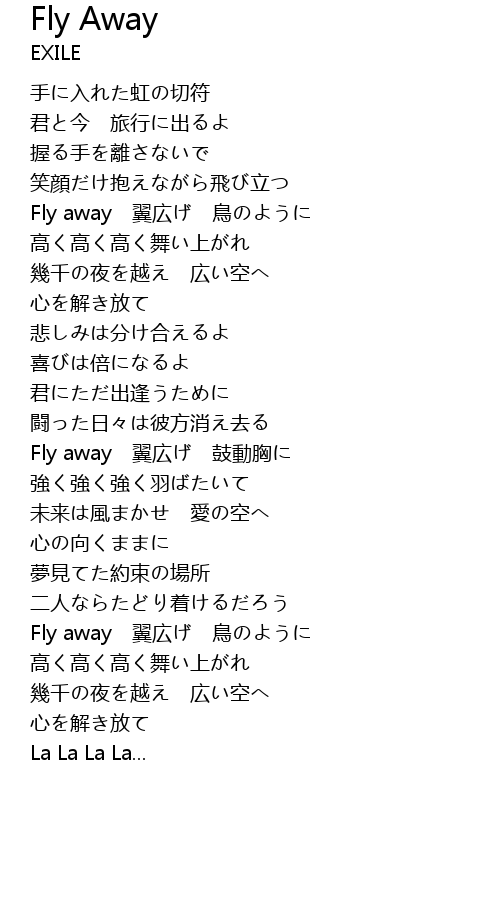 | [02:53.37] | Fly away 翼広げ 鳥のように |
