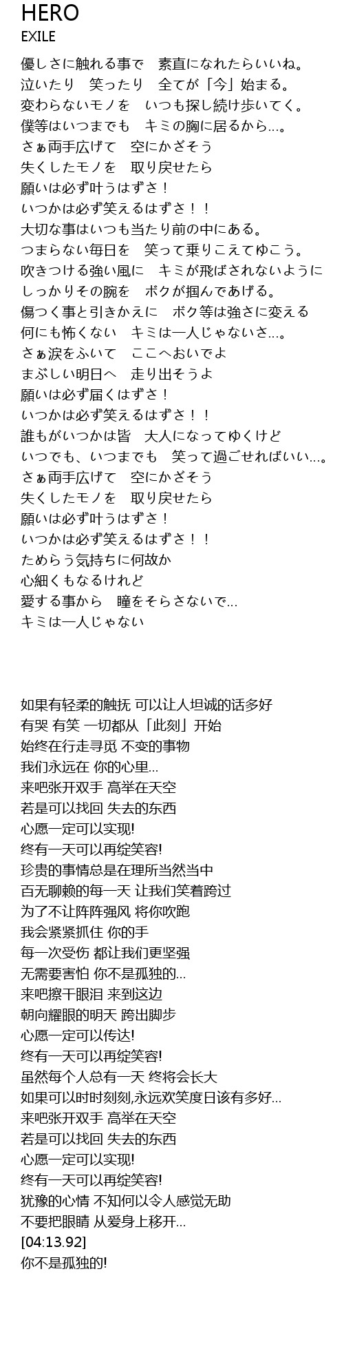 | [04:23.73] | キミは一人じゃない |