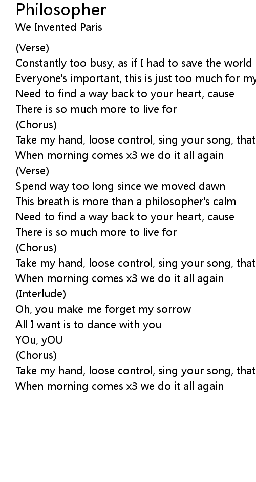 Take my hand, loose control, sing your song, that's all I love |