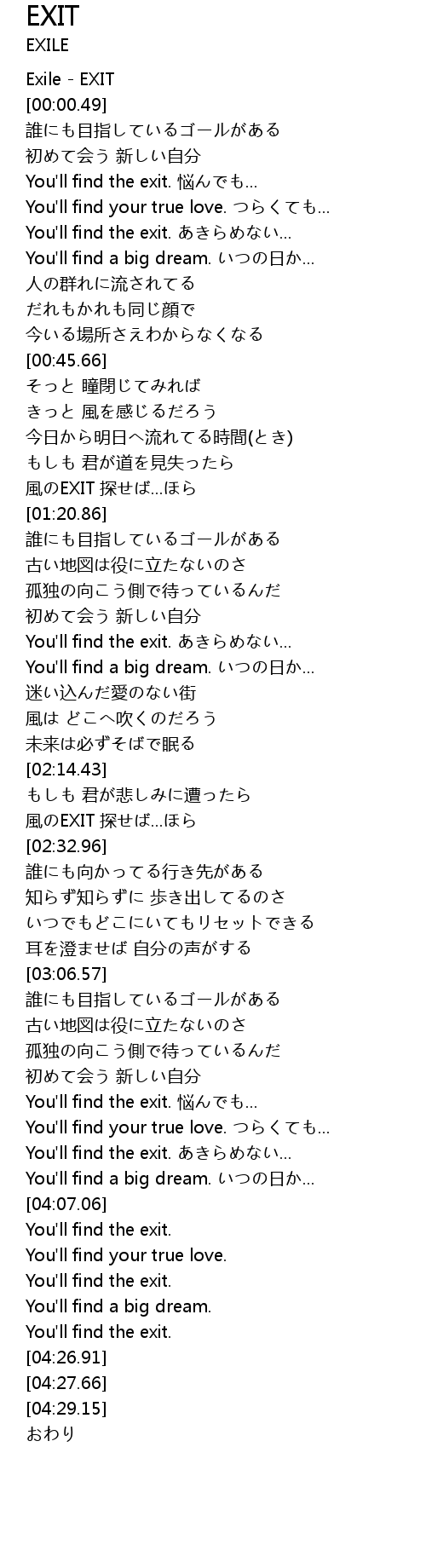 | [02:25.13] | 風のEXIT 探せば...ほら |