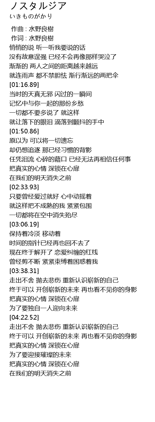 | [00:01.00] | 作词 : 水野良樹 |
