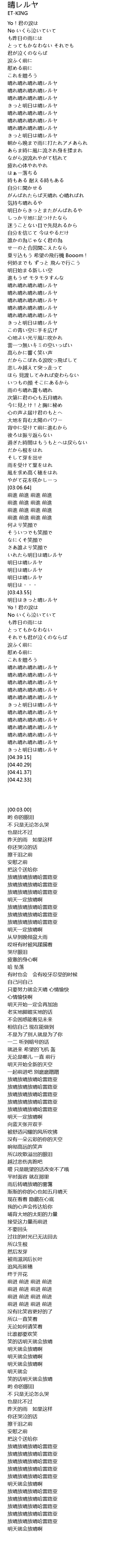 | [04:19.53] | 放晴放晴放晴哈雷路亚 |