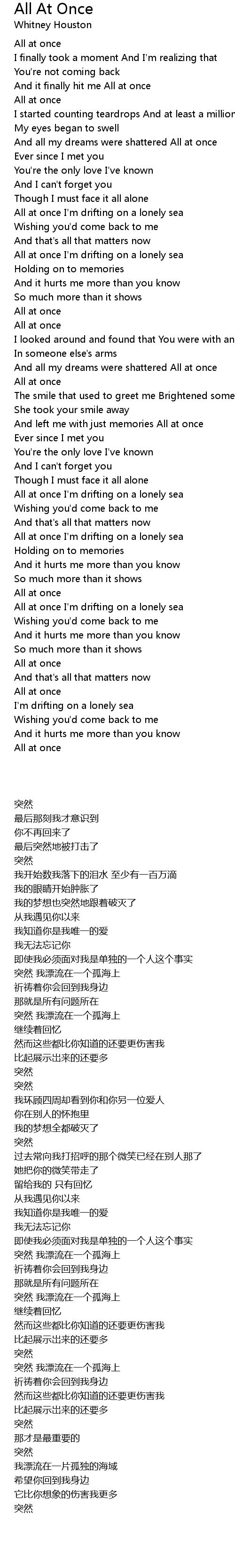 And all my dreams were shattered All at once |