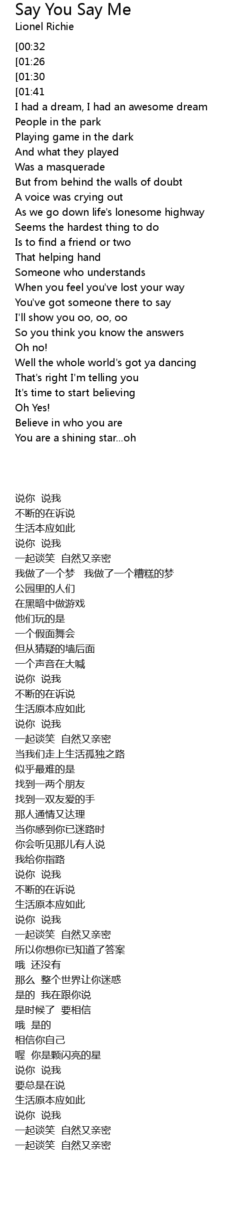 [00:17][00:32][01:21][01:36][02:24][02:39][03:18][03:33] Say you, say me