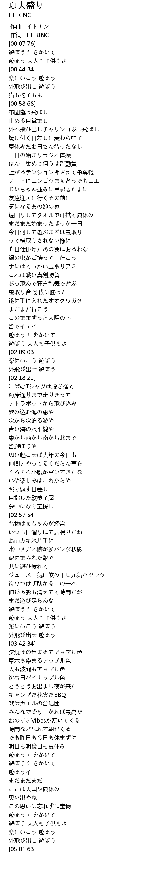 | [01:08.31] | 夏休みだお日さん待ったなし |