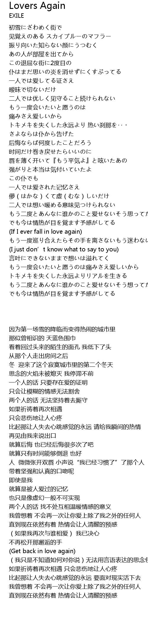 | [03:29.09] | (Get back in love again) (我只是不知道如何对你说)无法用言语表达的思念包围了我(如果我可以再次相爱) |