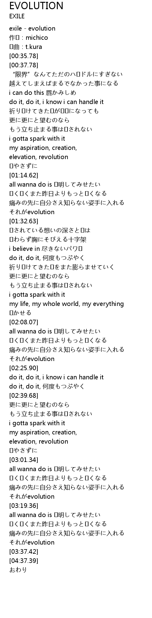 | [03:34.61] | evolution |