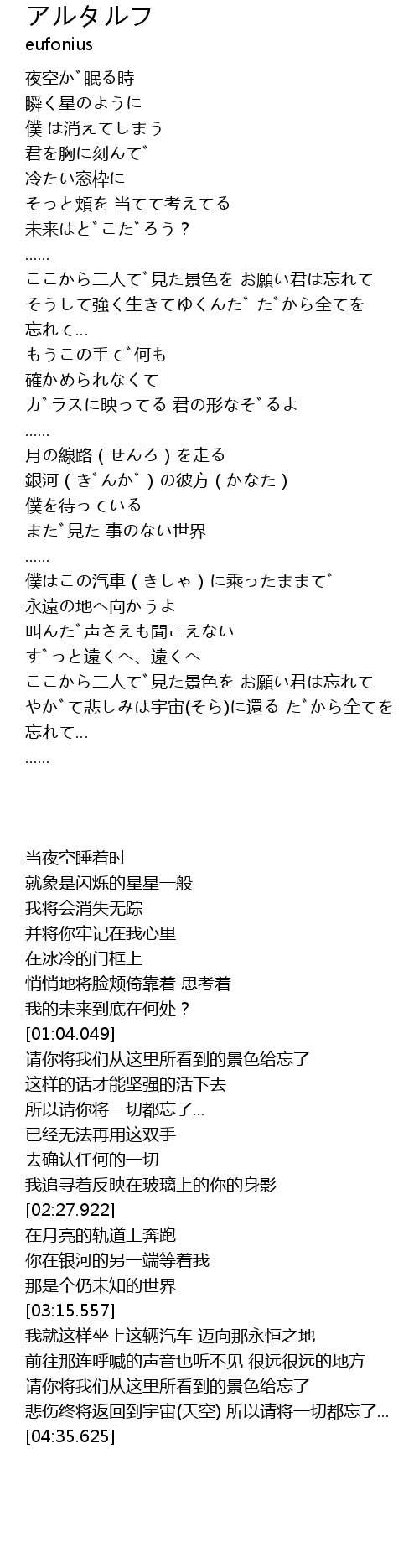 | [04:18.009] | 悲伤终将返回到宇宙(天空) 所以请将一切都忘了... |