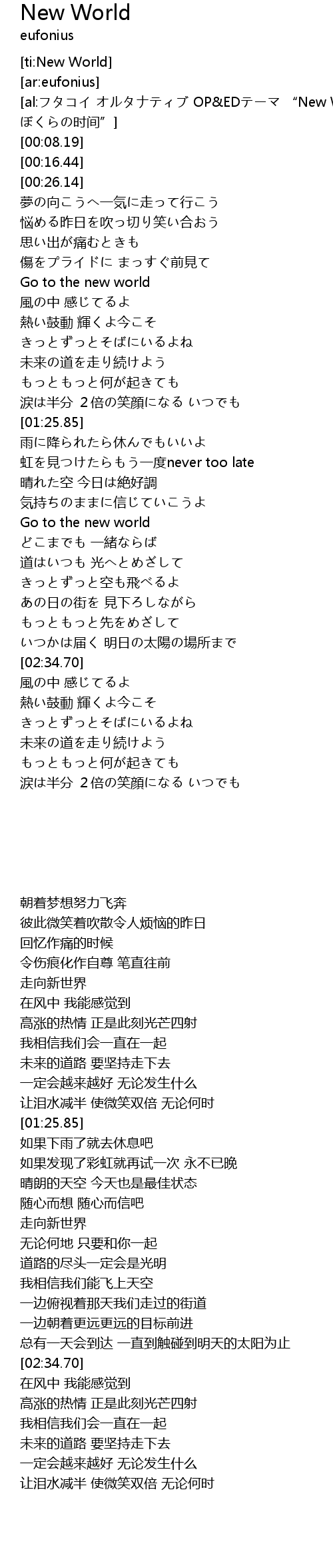 | [01:49.23] | 走向新世界 |