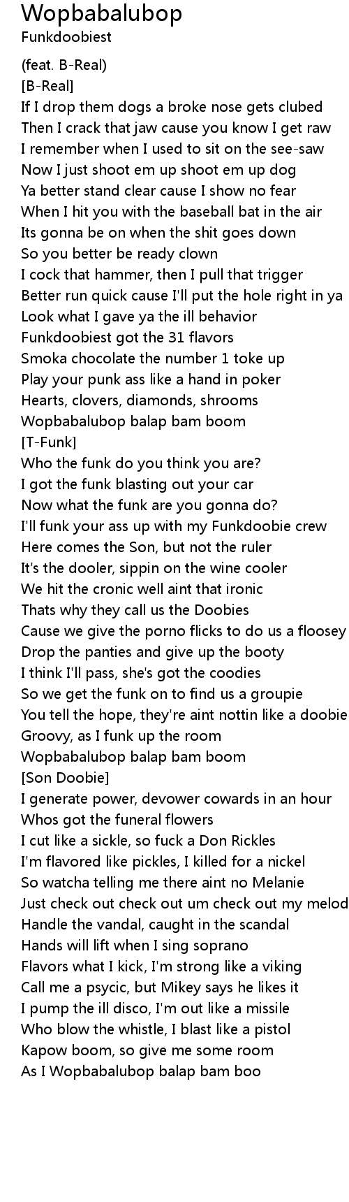 Wopbabalubop balap bam boom |